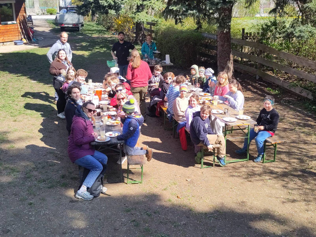 Am Samstag, dem 11. April, trafen sich zahlreiche Kinder, Jugendliche und Eltern der Pfadfinder*innengruppe zum gemeinsamen Zusammenräumen rund um das Pfadiheim. Unter dem Motto „Team Pfadis“ wurde tatkräftig angepackt, um das Heim und das Gelände für die bevorstehende Outdoor-Saison sowie die große 100-Jahr-Feier vorzubereiten.